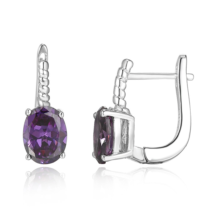 Bijoux simple 925 Parure de bijoux composée de boucles d'oreilles en argent sterling et d'un collier d'améthyste