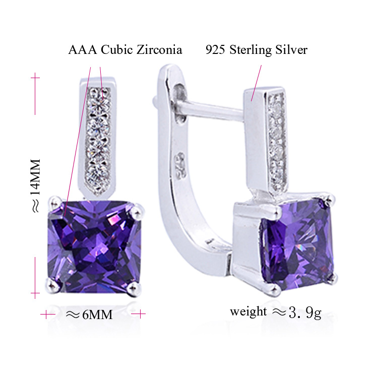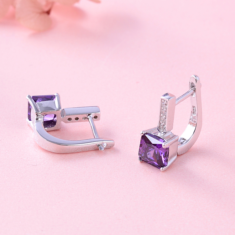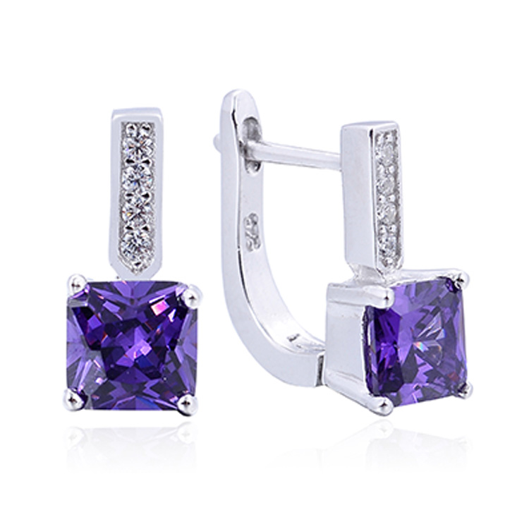 This pair of drop earrings sparkle majestically with purple crystal square and clear pavé. A spectacular silver-plated design for fabulous woman.