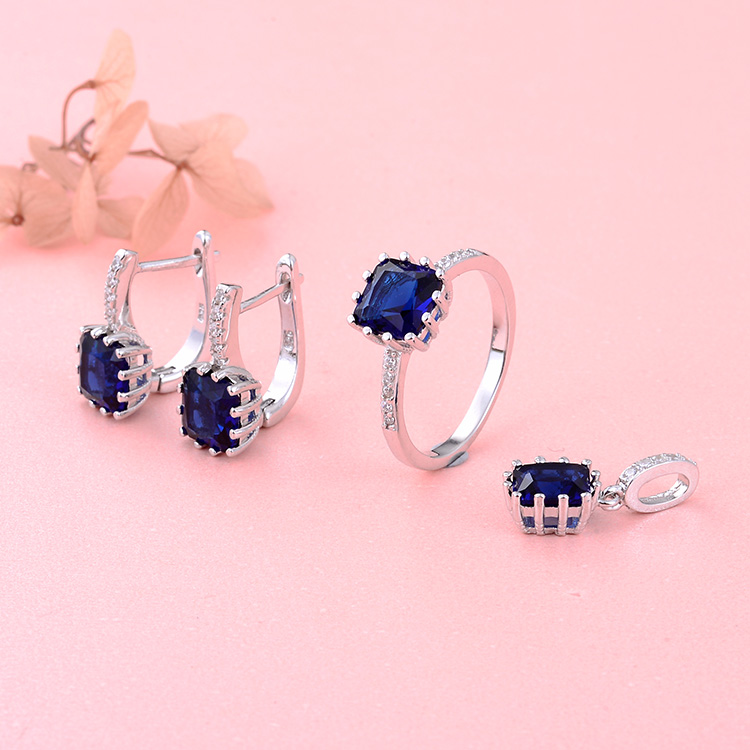 Specification: Classic Square Shape Rhodium Plated Real 925 Sterling Silver Blue Color Jewelry Set