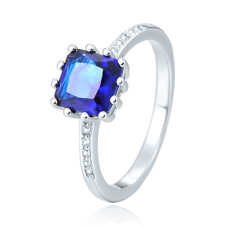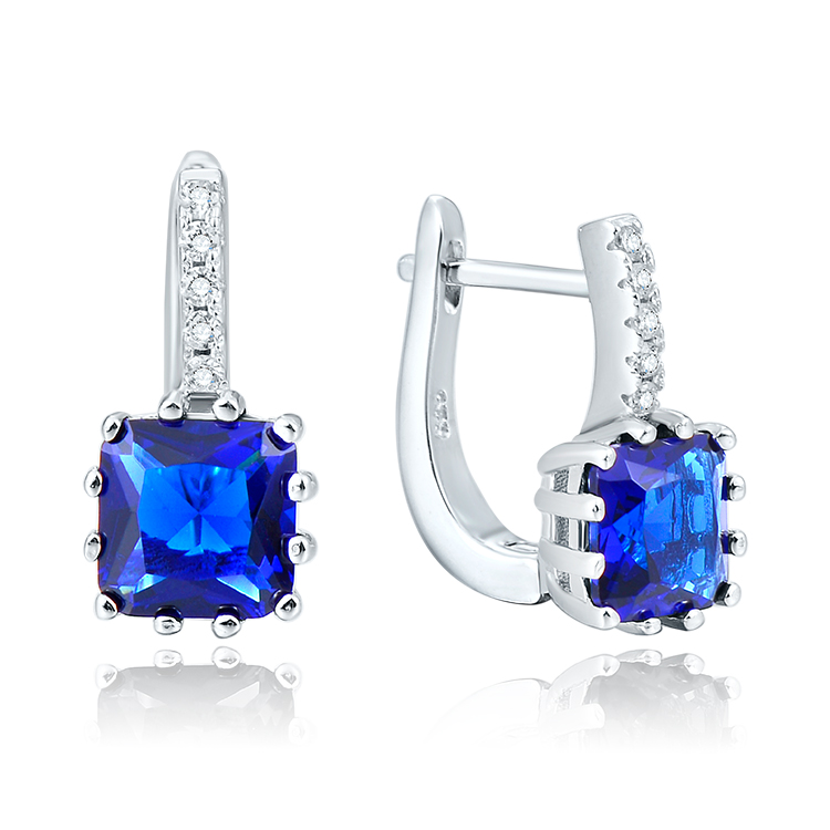 Spécification: plaqué rhodium de forme carrée classique 925 Ensemble de bijoux de couleur bleue en argent sterling